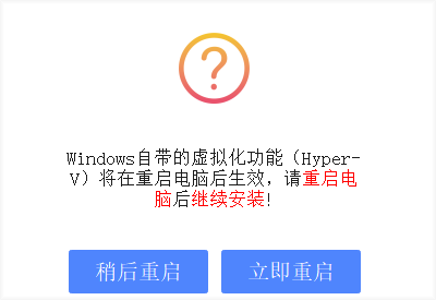 首次安装会提示重启电脑,点击“立即重启”继续安装: