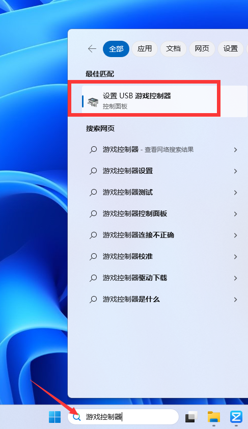 按下win键+X,搜索“游戏控制器”,打开USB游戏控制器,如下图所示: