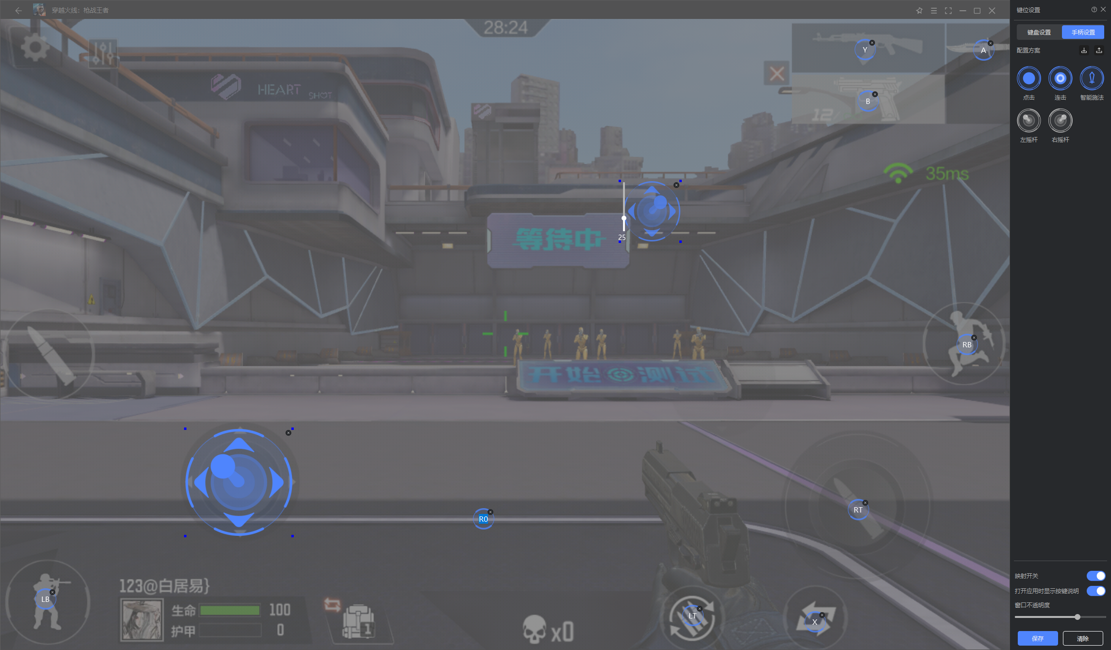 以穿越火线为例,FPS类游戏主要配置的按键是左摇杆,点击,右摇杆。