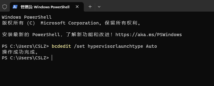 2.输入bcdedit /set hypervisorlaunchtype Auto,按回车键执行。