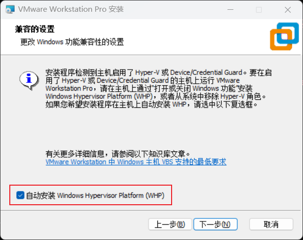 安装VMware时勾选 “自动安装Windows Hypervisor Platform(WHP)”