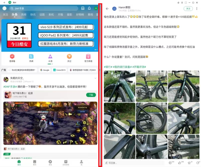 骈窗智览可以支持一个安卓应用窗口中同时显示这个安卓应用的两个页面,方便用户的页面切换,能够同时浏览更多内容。